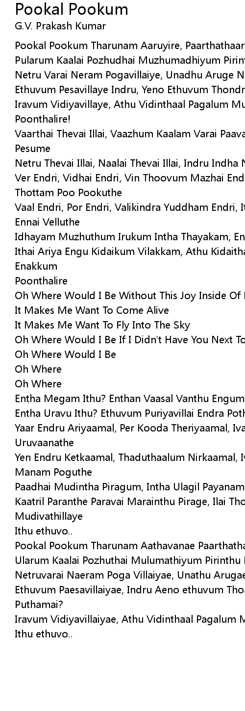 1 ... | pookal pookum tharunam lyrics in englishxpookal pookum tharunam lyrics in english px